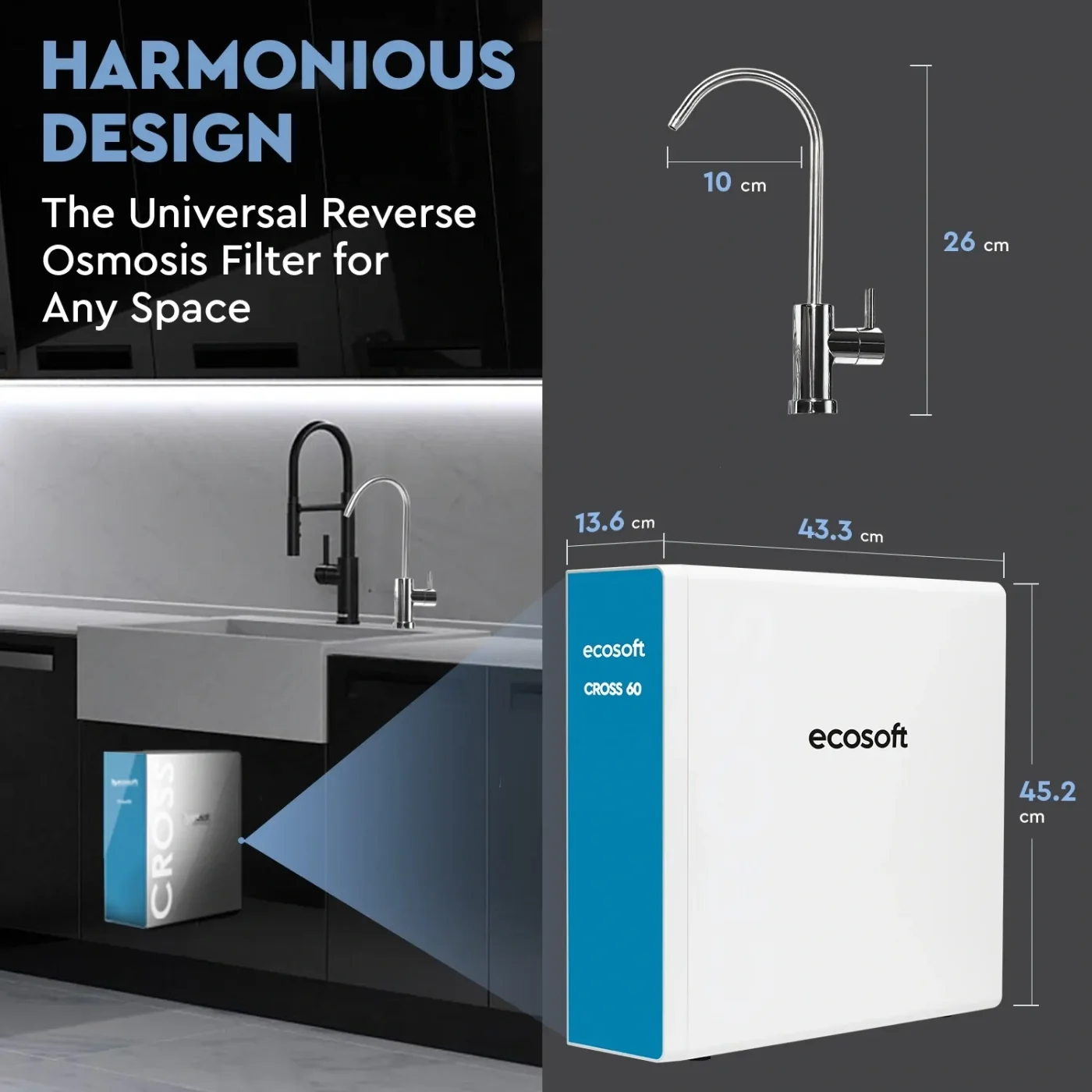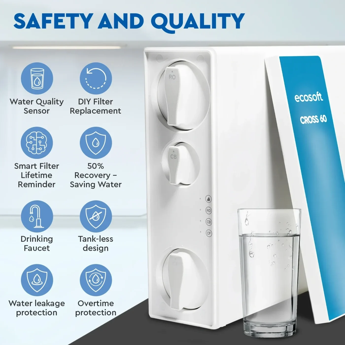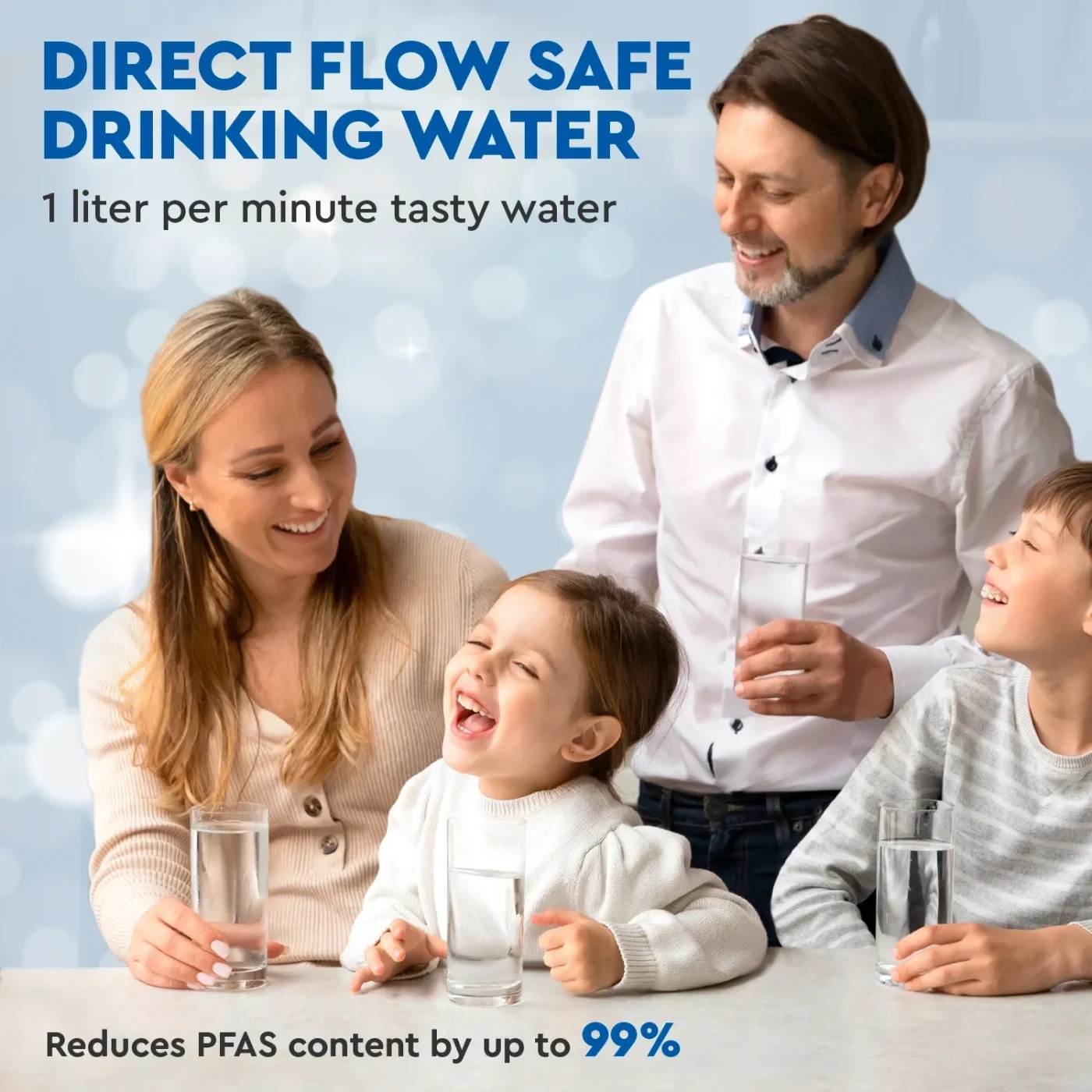 This compact direct-flow reverse osmosis water filtration system delivers high-quality drinking